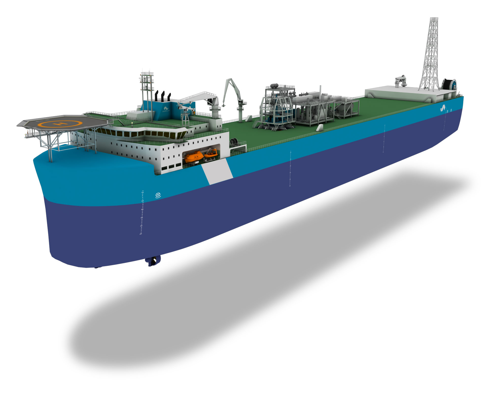 The new-build VPU – featuring a double-skinned hull – is designed to be extremely operationally efficient whilst also minimising emissions and satisfying all current maritime legislation. Amplus can offer the VPU’s with either Spread Mooring or Turret Mooring to ensure maximum station-keeping, safety, integrity and reliability.